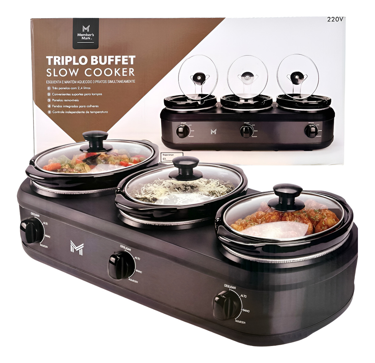 Rechaud Elétrico Triplo Buffet Slow Cooker Inox 220V